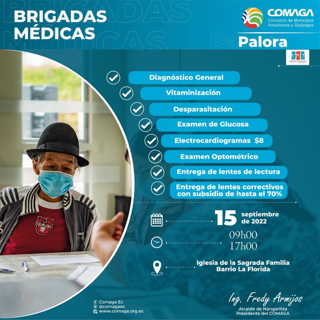 Este 15 de septiembre se desarrollará la atención en los cantones asociados de Palora y Santiago con diagnóstico general, vitaminización, desparasitación, electrocardiogramas, exámenes optométricos, entrega de lentes