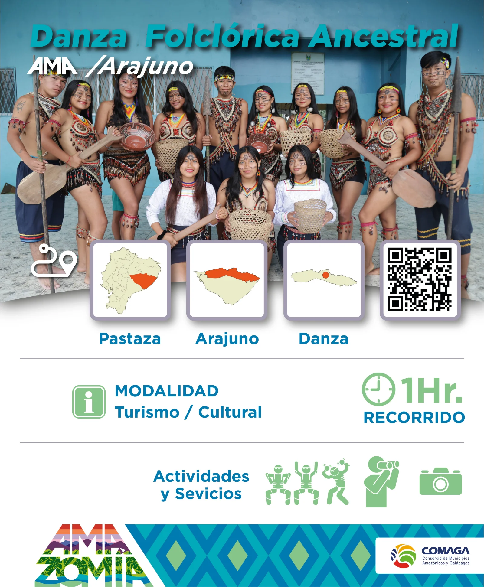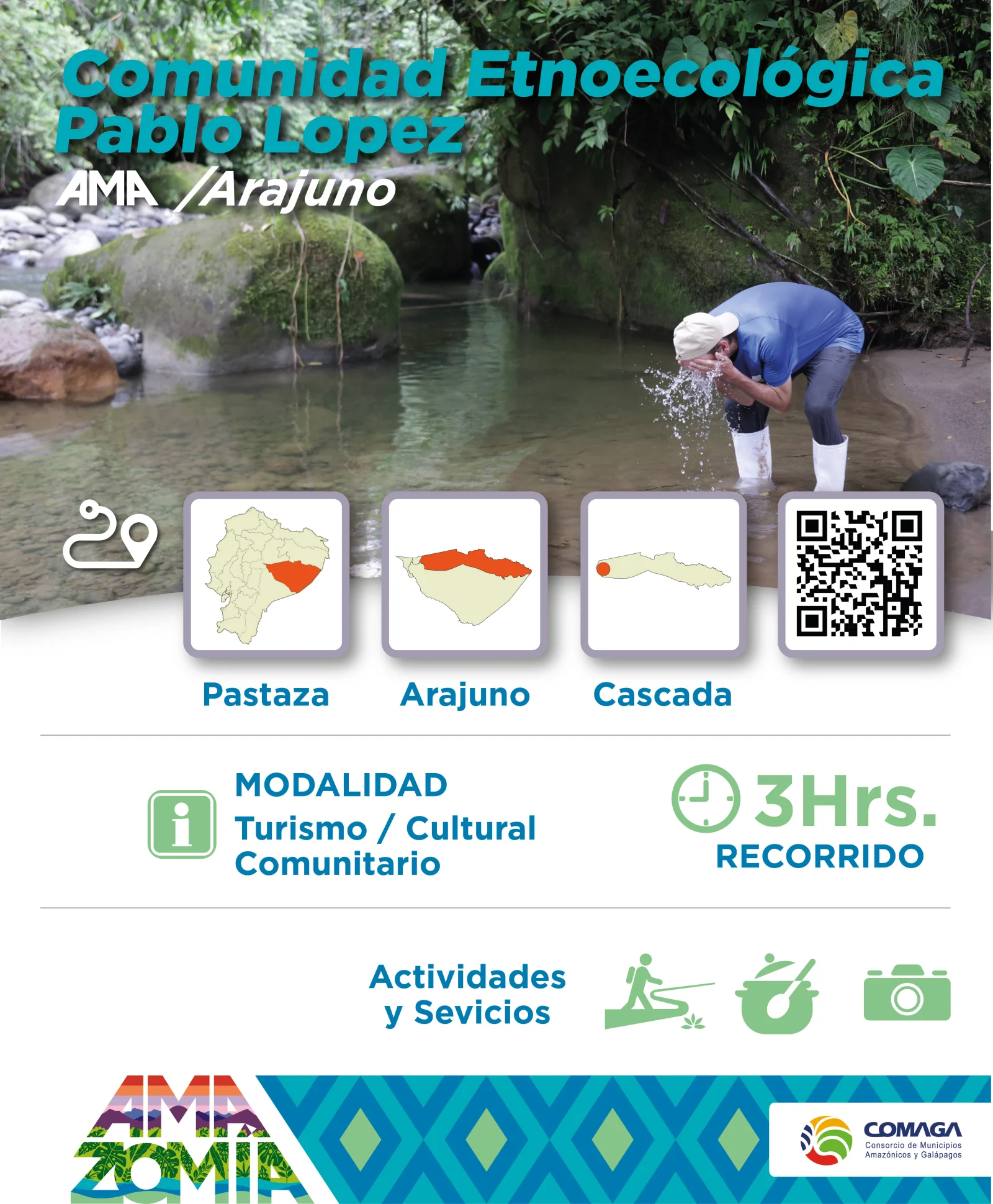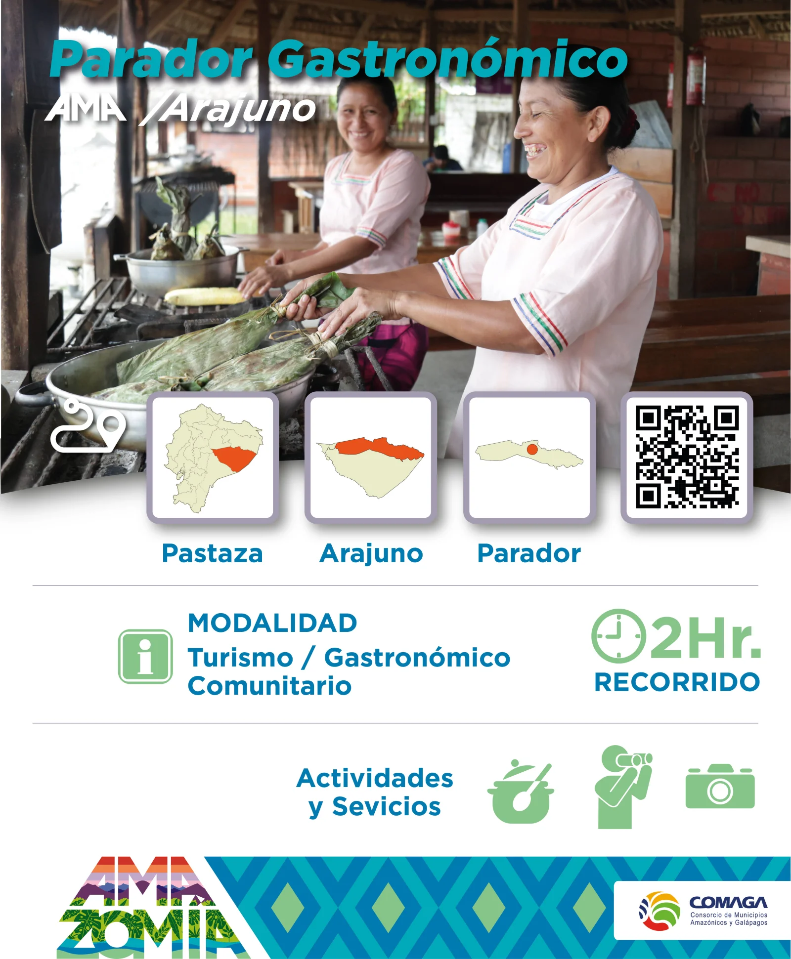 Las comunidades del Cantón Arajuno guardan en su extenso territorio una infinidad de paisajes, sitios turísticos y de aventura para disfrutar en familia. Áreas protegidas aptas para la investigación pero también para actividades turísticas como paseos en canoa, gastronomía típica, visitas a cascadas, caminatas por la selva o para hacer kayak. Ubicada a una hora y media de Puyo, en Pastaza, Arajuno aloja a varias comunidades kichwas donde se impulsa entre todos sus habitantes vivencias de turismo comunitario. Quienes habitan en estos poblados se esmeran en la organización de danzas tradicionales para los visitantes, en hablar de sus conocimientos y brindarles de su comida. La biodiversidad de esta localidad es uno de los principales atractivos.