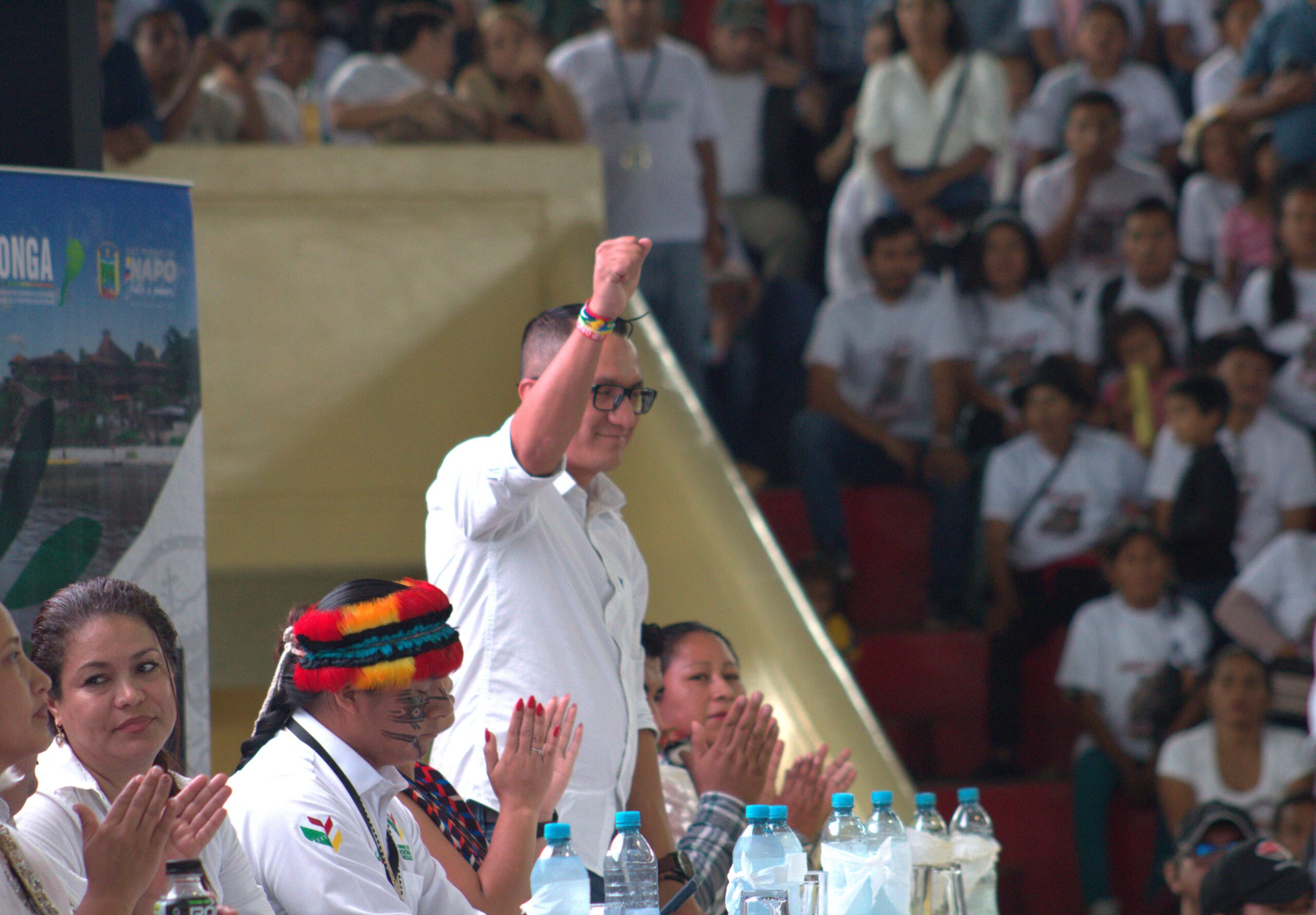 Como miembro de la mesa directiva estuvo presente el Ing. Francis Pavón, Alcalde de Gualaquiza, Presidente del COMAGA, en representación de los Alcaldes que asistieron, en el punto de su intervención agradeció la invitación del CONGA a participar en este encuentro, al tiempo de señalar los requerimientos más urgentes de la Región Amazónica, en su discurso en el XI Cumbre Amazónica Napo 2024, reiteró el pedido para que se declare en emergencia la Troncal Amazónica, pedido urgente de todos los cantones, así como también solicitó que se pague la deuda que mantiene el Gobierno Central a los GAD en todos sus niveles.