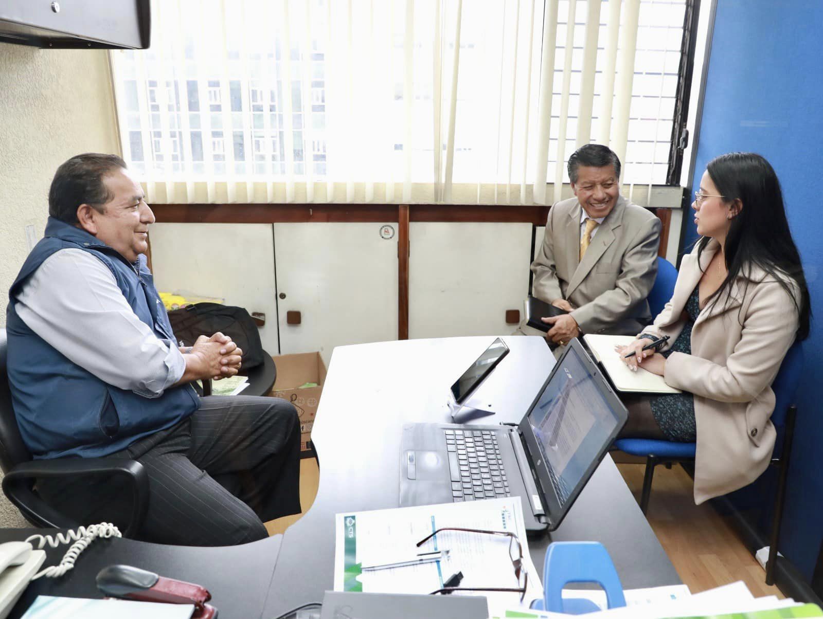En las oficinas del COMAGA en la ciudad de Quito, el Alcalde de Putumayo se reunió con varios técnicos del Consorcio, como el Ing. René Álvarez, de planificación; la Ing. Cinthia Delgado de cooperación internacional y la Ing. Samanta Montoya, de control interno.