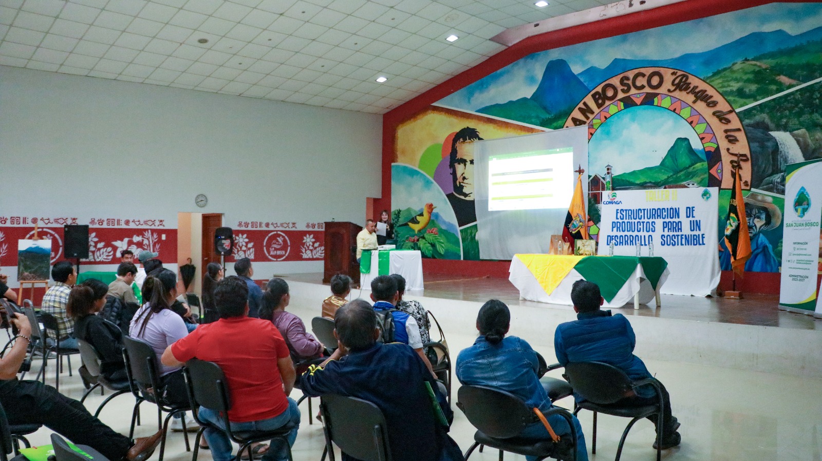 El ocho de Abril se inauguró en el Auditorio Municipal de San Juan Bosco, en la Provincia de Morona Santiago, el segundo Taller denominado "𝐄𝐬𝐭𝐫𝐮𝐜𝐭𝐮𝐫𝐚𝐜𝐢ó𝐧 𝐝𝐞 𝐏𝐫𝐨𝐝𝐮𝐜𝐭𝐨𝐬 𝐩𝐚𝐫𝐚 𝐮𝐧 𝐃𝐞𝐬𝐚𝐫𝐫𝐨𝐥𝐥𝐨 𝐒𝐨𝐬𝐭𝐞𝐧𝐢𝐛𝐥𝐞". El mismo continúa para los municipios asociados, el 10 y 11 de abril en el Salón de la Ciudad en el Municipio de Lago Agrio en la Provincia de Sucumbíos.