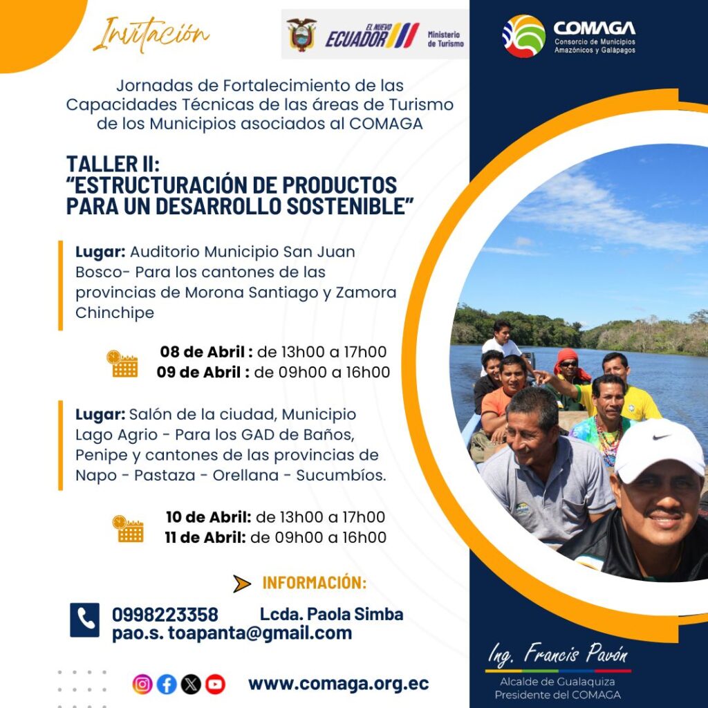 𝐄𝐥 𝐂𝐨𝐧𝐬𝐨𝐫𝐜𝐢𝐨 𝐝𝐞 𝐌𝐮𝐧𝐢𝐜𝐢𝐩𝐢𝐨𝐬 𝐀𝐦𝐚𝐳ó𝐧𝐢𝐜𝐨𝐬 𝐲 𝐆𝐚𝐥á𝐩𝐚𝐠𝐨𝐬, 𝐂𝐎𝐌𝐀𝐆𝐀 𝐞𝐧 𝐜𝐨𝐨𝐫𝐝𝐢𝐧𝐚𝐜ió𝐧 𝐜𝐨𝐧 𝐞𝐥 𝐌𝐢𝐧𝐢𝐬𝐭𝐞𝐫𝐢𝐨 𝐝𝐞 𝐓𝐮𝐫𝐢𝐬𝐦𝐨, desarrolla las Jornadas de fortalecimiento de las capacidades técnicas en turismo, de los municipios asociados al Consorcio, con una serie de talleres de ocho temáticas que se ejecutan desde el mes de febrero hasta el mes de septiembre del presente año.