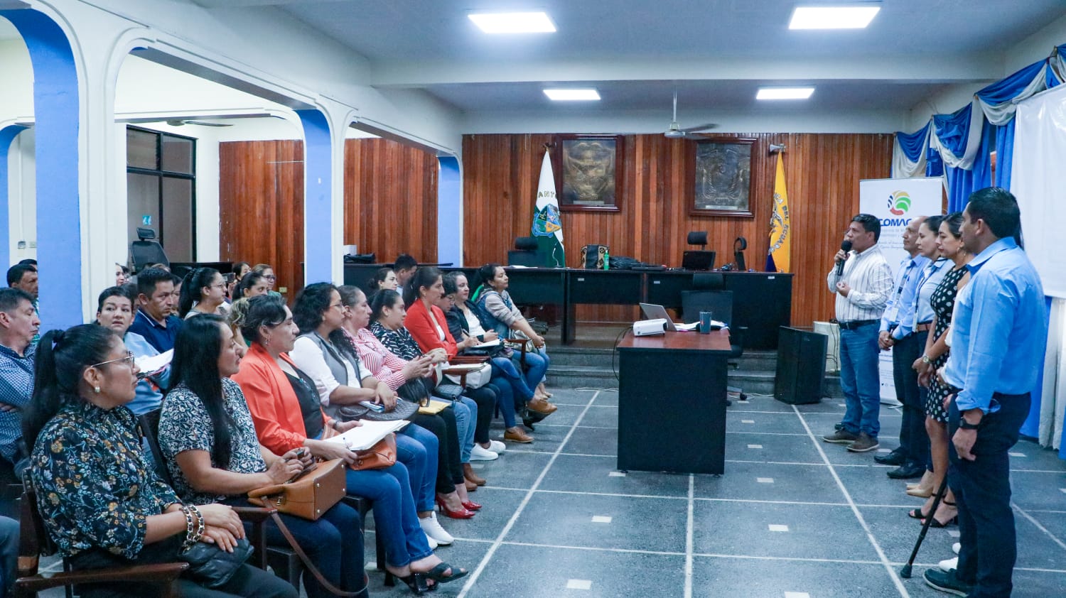 El Alcalde de Zamora, Víctor Manuel González dio la bienvenida a los asistentes e inauguró los talleres que organiza el Consorcio de Municipios Amazónicos y Galápagos en coordinación con las instituciones estatales y gubernamentales; es una capacitación en territorio dirigida al equipo financiero de los municipios asociados y a través de la coordinación de los Gobiernos Autónomos Descentralizados también participan las empresas públicas y entidades adscritas a los GAD.