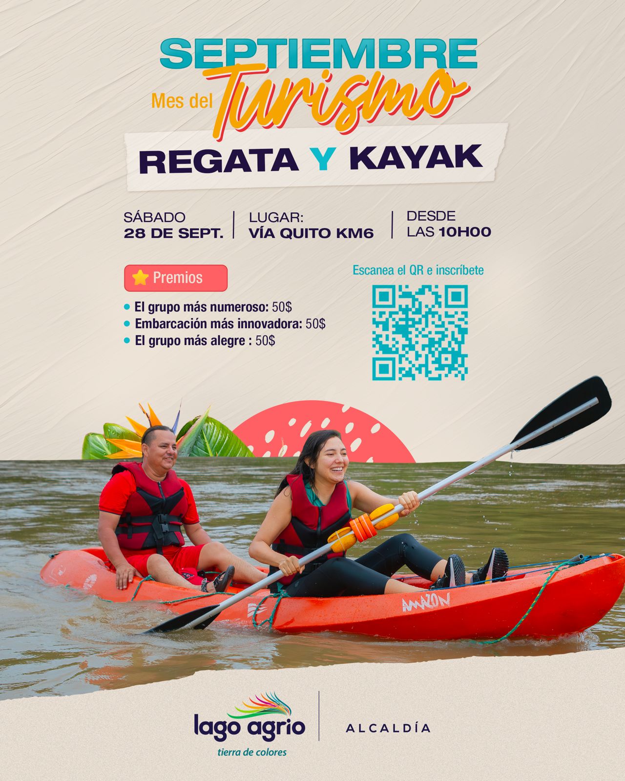 No te lo pierdas, será un día increíble para disfrutar del turismo y la cultura de Lago Agrio, la Tierra de Colores. ¡Prepárate para la gran regata por el Día del Turismo! Este sábado 28 de septiembre, acompáñanos a disfrutar de una emocionante regata en el río Aguarico, donde la aventura y la naturaleza se fusionan en un evento inolvidable.