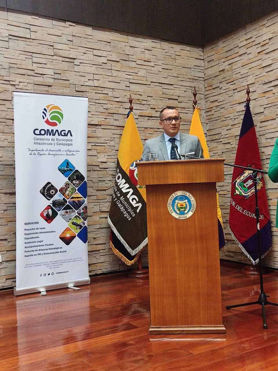 El Ing. Francis Pavón, Alcalde de Gualaquiza y Presidente del COMAGA, agradeció a quien lo antecedió en el cargo hasta mediados del año 2023, Ing. Fredy Armijos, así como a los funcionarios del Consorcio, a quienes invitó a continuar trabajando permanentemente por el desarrollo e integración de la Región Amazónica e Insular; hizo un llamado a las autoridades de los diferentes niveles del Gobierno Central para que se dé la importancia que se debe dar a los amazónicos, "aportamos muchísimo para el fisco aportamos muchísimo para la economía de todo el país". Manifestó que "estoy convencido que hemos sido solidarios, pues salen recursos todos los días de los amazónicos (petróleo, hidroeléctricas, minería) y no es posible que no tengamos vías que no estén cien por ciento terminadas". Expresó que "queremos apuntar al tema turístico, pero siempre decimos que las vías es el principal eje de desarrollo de los pueblos, si no tenemos conexión, en perfectas condiciones no podemos trabajar al cien por ciento". Manifestó que "la mayoría de los gobiernos amazónicos somos municipios pequeños y dependemos de las asignaciones del Gobierno". Reiteró el agradecimiento al Ministerio de Turismo, "sector al que queremos apuntar". Señaló que se considera que la Región Amazónica tiene muchísimo potencial e hizo un llamado para trabajar unidos para el bienestar de los ciudadanos.